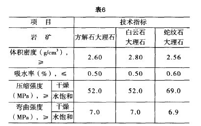 荒料的物理性能应符合表6的规定,工程对石材物理l生能项目及指标有特殊要求的,按工程要求执行。