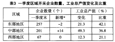 从区域看,中部地区规模以上石材开采企业在数量、累计实现工业总产值及所占比重方面已经接近东部地区水平,且增幅大幅领先其他地区;中部地区规模以上石材加工企业在数量上虽然仅为东部地区的1/3,但累计实现工业总产值增幅领先其他地区,实现工业总产值所占比重不断提高,显示中部地区承接产业转移的步伐不断加快,能力不断增强。见表2、表3。