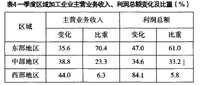 从区域看,与上年同期相比,中、西部地区规模以上加工企业应收帐款净额、存货及产成品增幅均高于全国平均水平,其中西部地区高于中部地区;东部地区规模以上加工企业上述指标增幅低于全国平均水平。中部地区规模以上开采企业存货比上年同期增长118.0%,增幅远高于西、东部地区的33.5%和42.O%。见表4、表5。